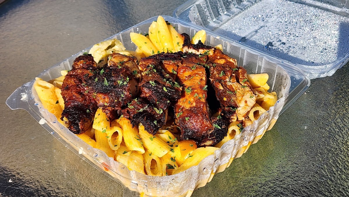 A great discovery today in Jacksonville! First time here but it won't be the last! I tried the jerk chicken and my husband tried the jerk chicken rasta pasta... chicken was fall-off-the-bone delicious! I had 2 sides with mine... plenty of food! The service was so welcoming and made you feel at home. Highly recommend this place. You won't be disappointed!
